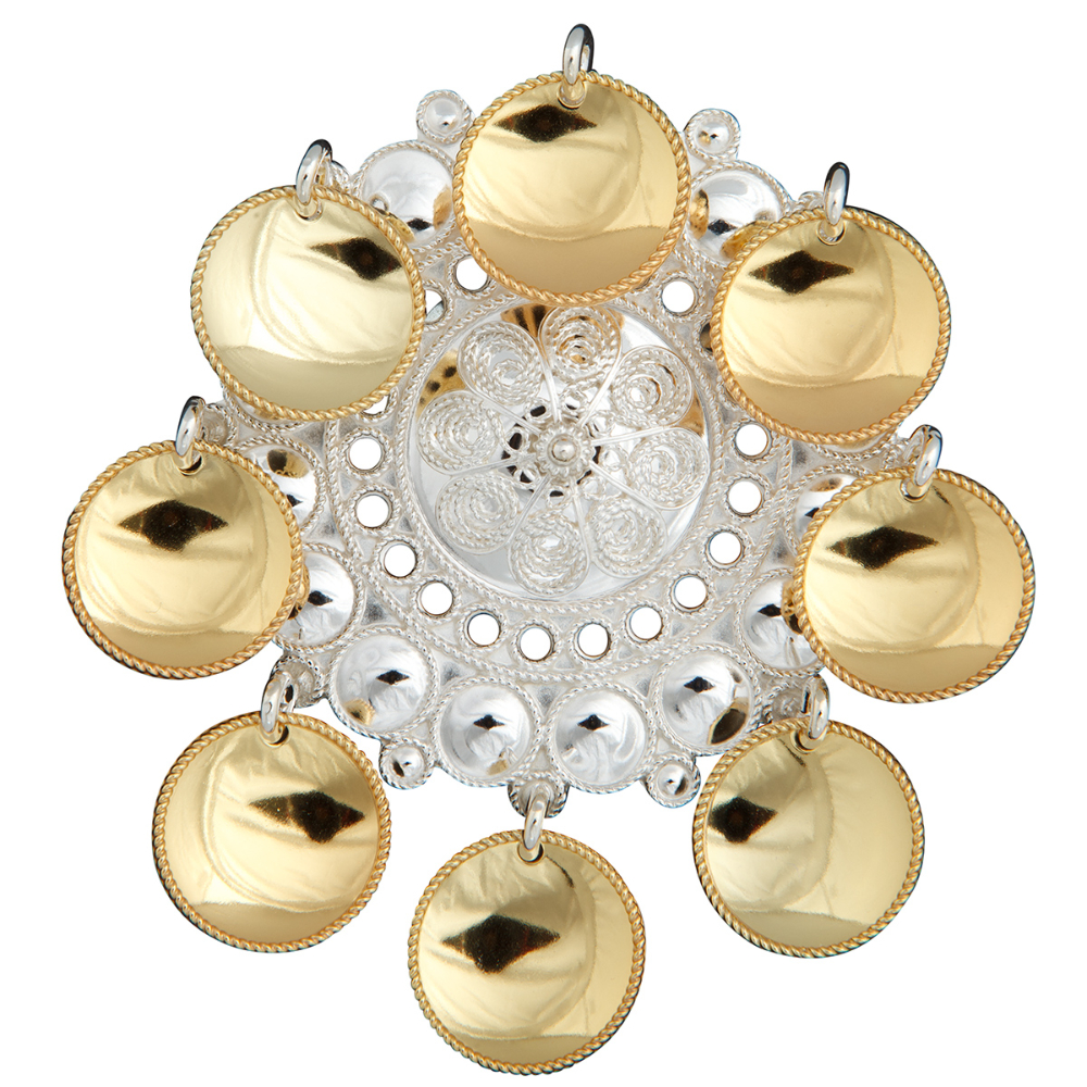 Liten løvsølje filigran, forgylte løv, Åmlibunad.