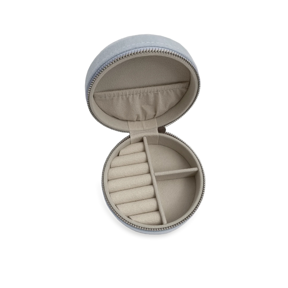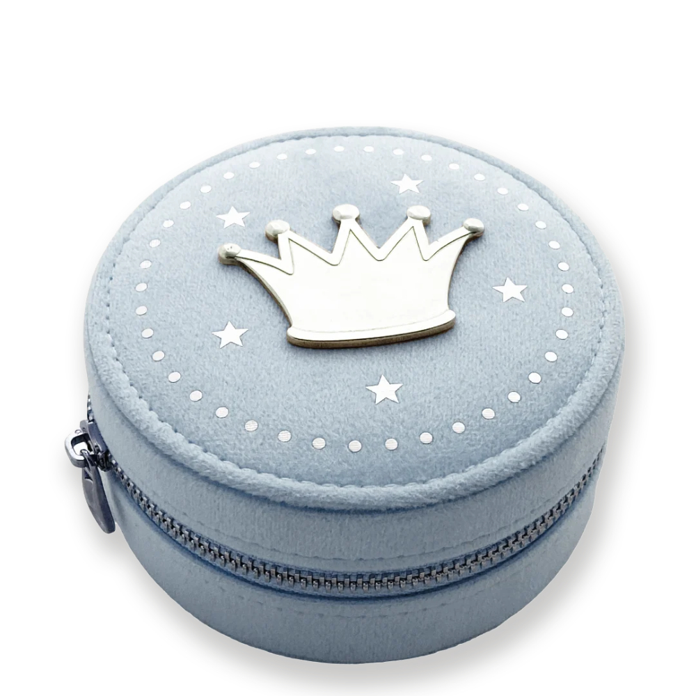 Smykkeskrin i lys blå velour med krone. Kan graveres
