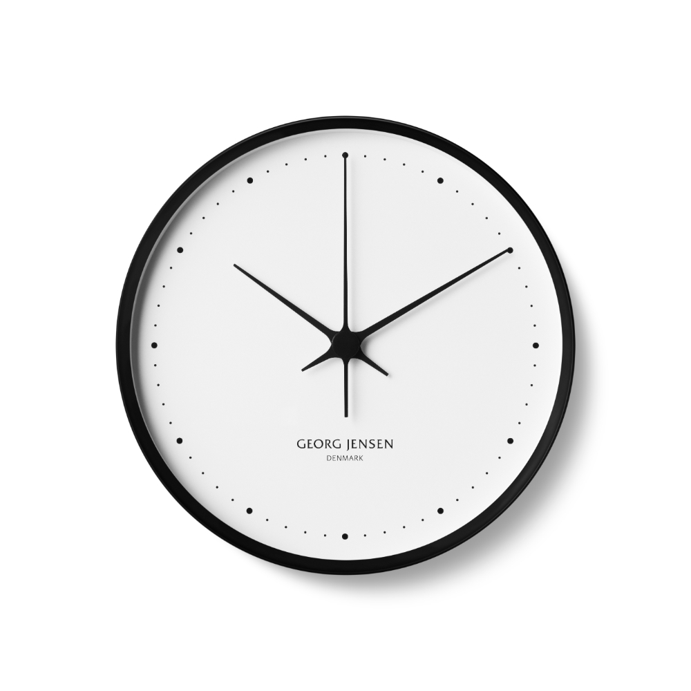 Kom aldri for sent igjen med denne vakre, sorte versjonen av den originale Henning Koppel-klokken fra 1978. Den uttrykksfulle minimalismen i den hvite urskiven, avsmalnende sorte visere og enkle prikker som tidsmarkører gir denne 30 cm veggklokken et – bokstavelig talt – tidløst utseende, og den vil ta seg godt ut i ethvert hjem eller på kontoret.