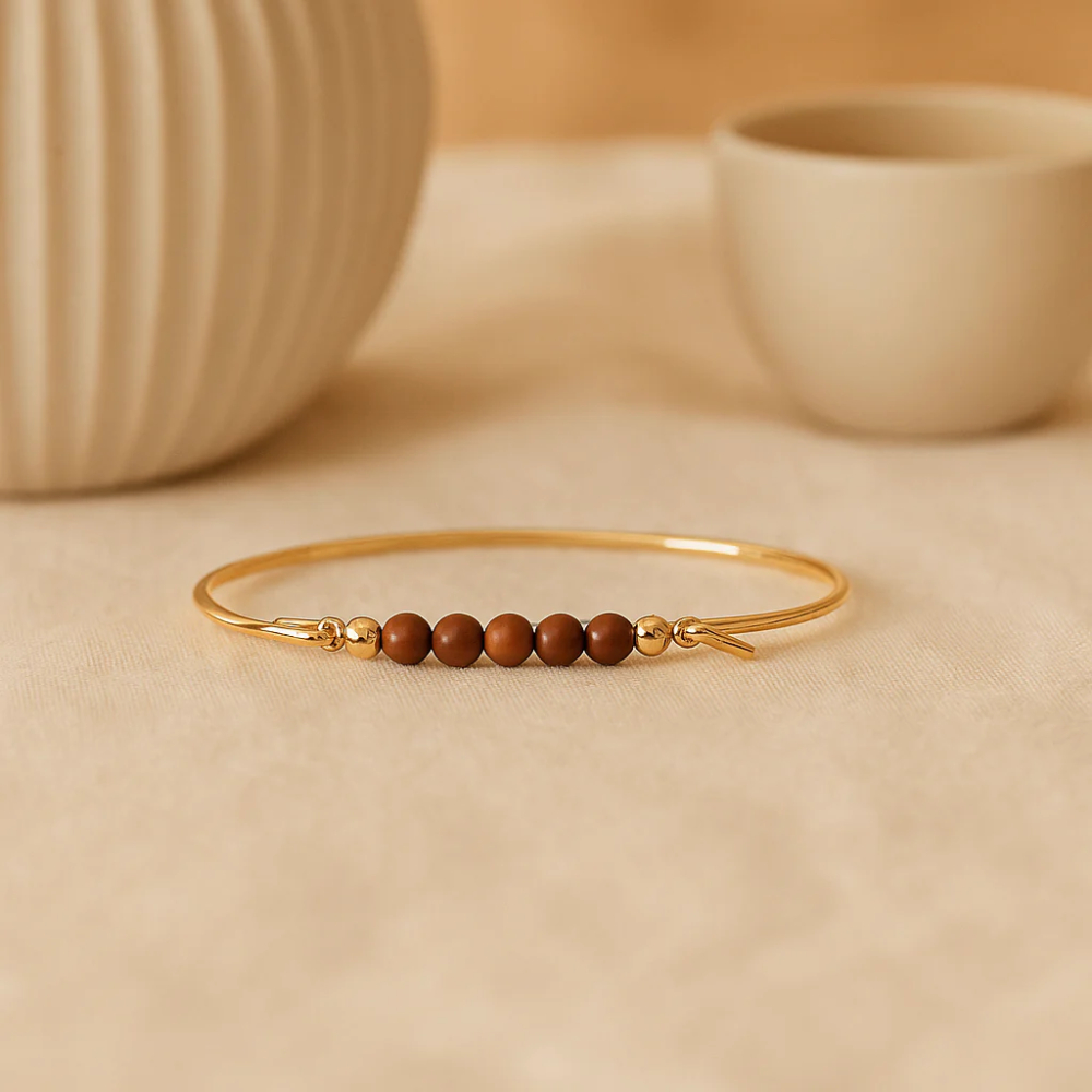 Red Jasper topp til armring og kjede, hvor toppen funger som lås og er av sølv som er gullbelagt.