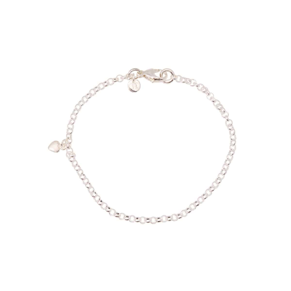 Elise armbånd 1 rad er et enkelt armbånd som kan brukes til det meste. Denne uoksiderte versjonen har et matt sølvhjerte tilsynelatende tilfeldig plassert.
