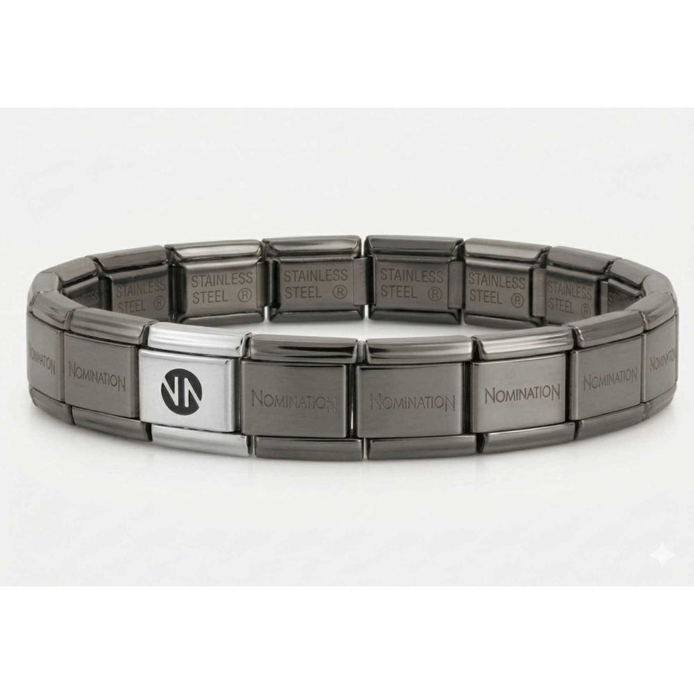 Nomination – Basearmbånd i sort rustfritt stål