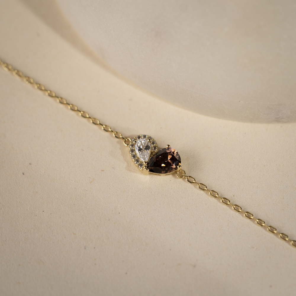 Pan Jewelry Classic – “Sammen” armbånd i forgylt sølv med brun zirkonia