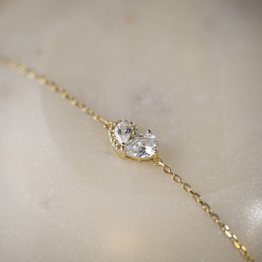 Et delikat hjerte i 925 forgylt sølv, satt sammen av to stener.