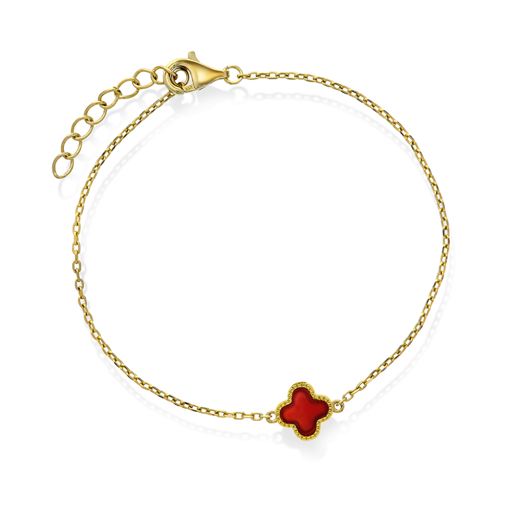 Trendy armbånd i forgylt sølv med kløver i rød agat.