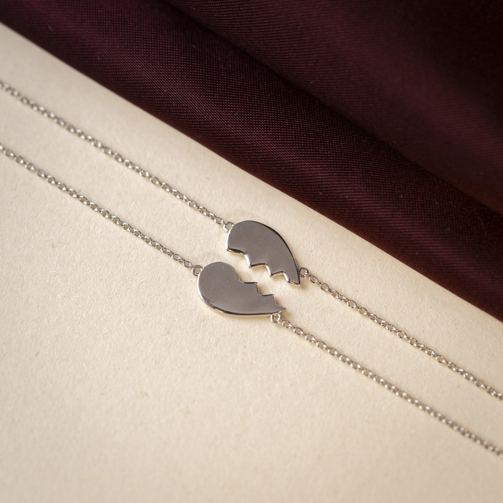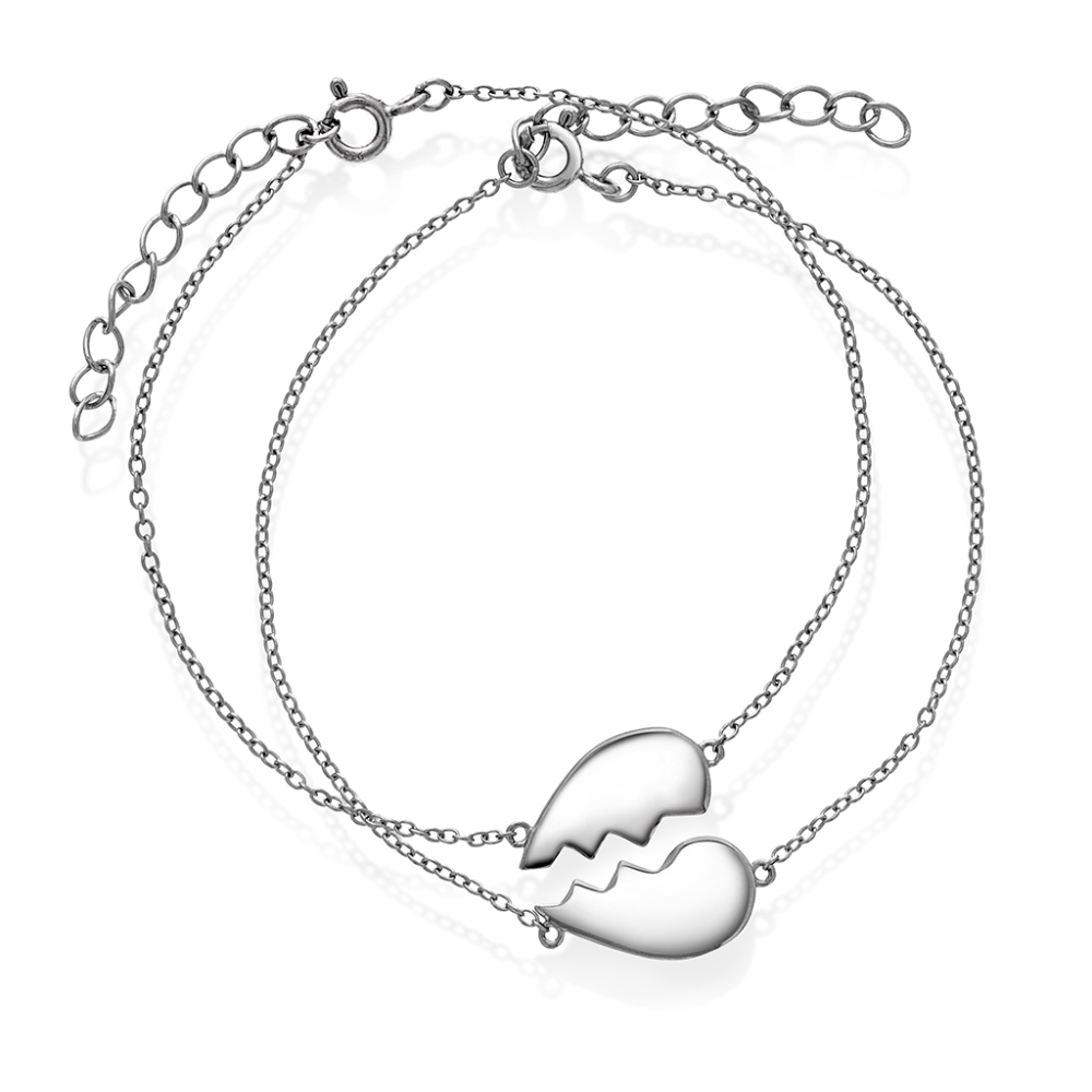 Vennskapsarmbånd – to halvdeler, ett hjerte. To vakre armbånd i 925 rhodinert sølv med et delt hjerte – én halvdel til deg, én til din beste venn.