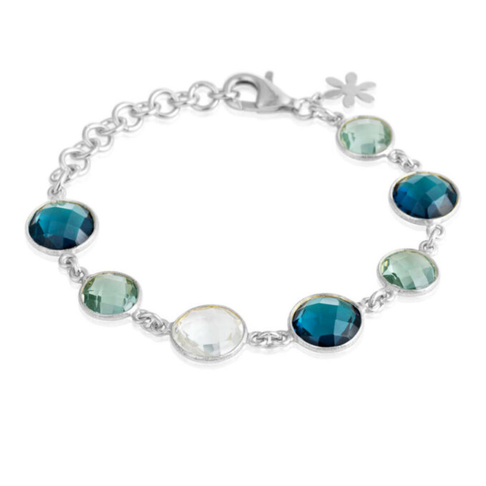 Susanne Friis Bjørner – Sølv armlenke med grønnkvarts, London blå krystall og bergkrystall