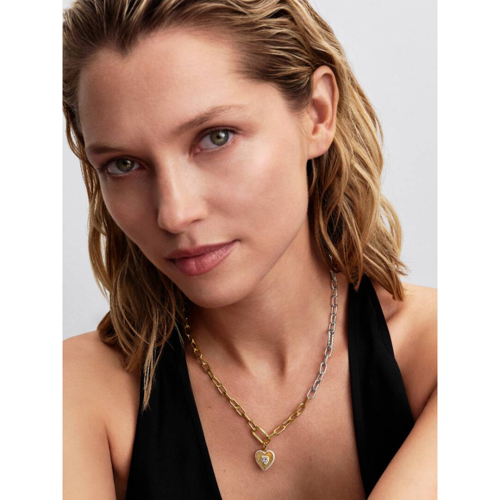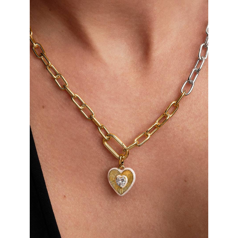 Pandora – Hjertemedaljong med cubic zirkonia og glittrende emalje ,14k forgylling