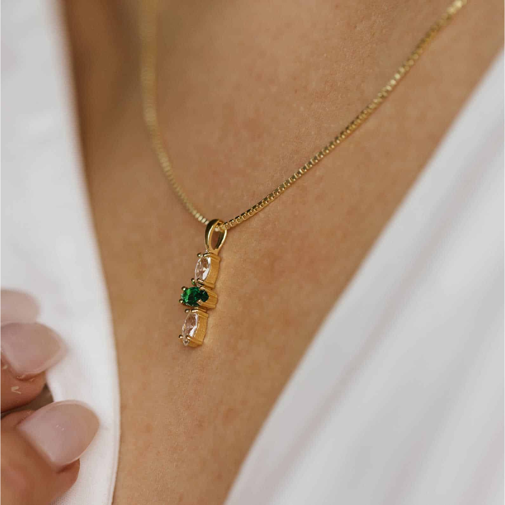 Smykke i sølv med hvite og grønn zirkonia
