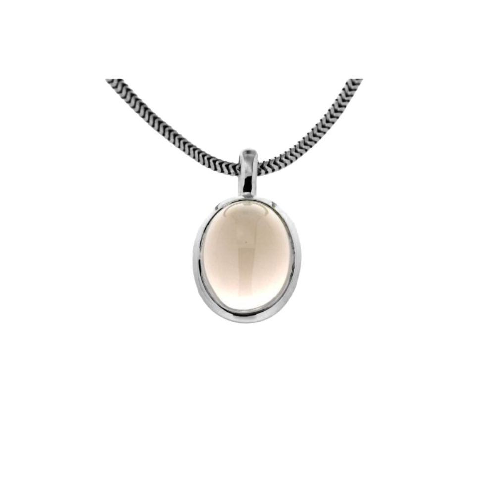 Gold by Frisenberg- Anheng i hvitt gull med oval rosenkvarts 42 cm sølvkjede