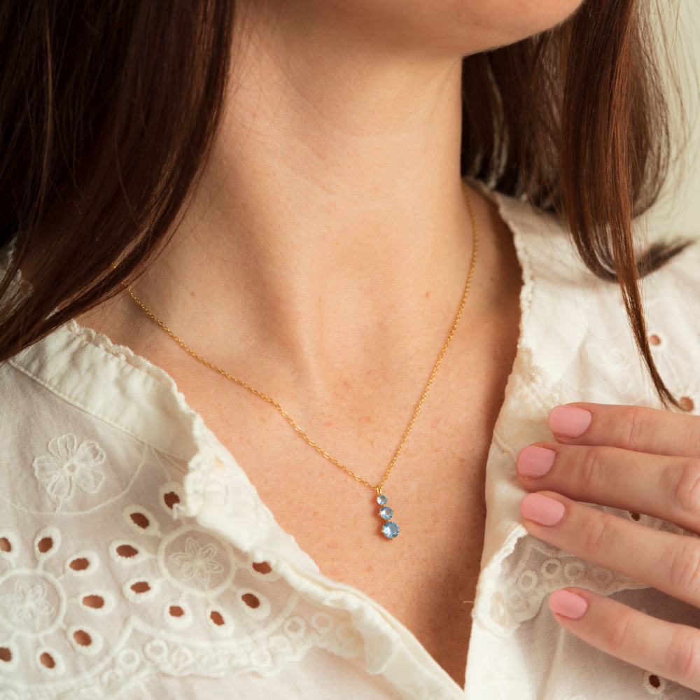 Her med aqua-blå zirkonia i tre forskjellige størrelser.