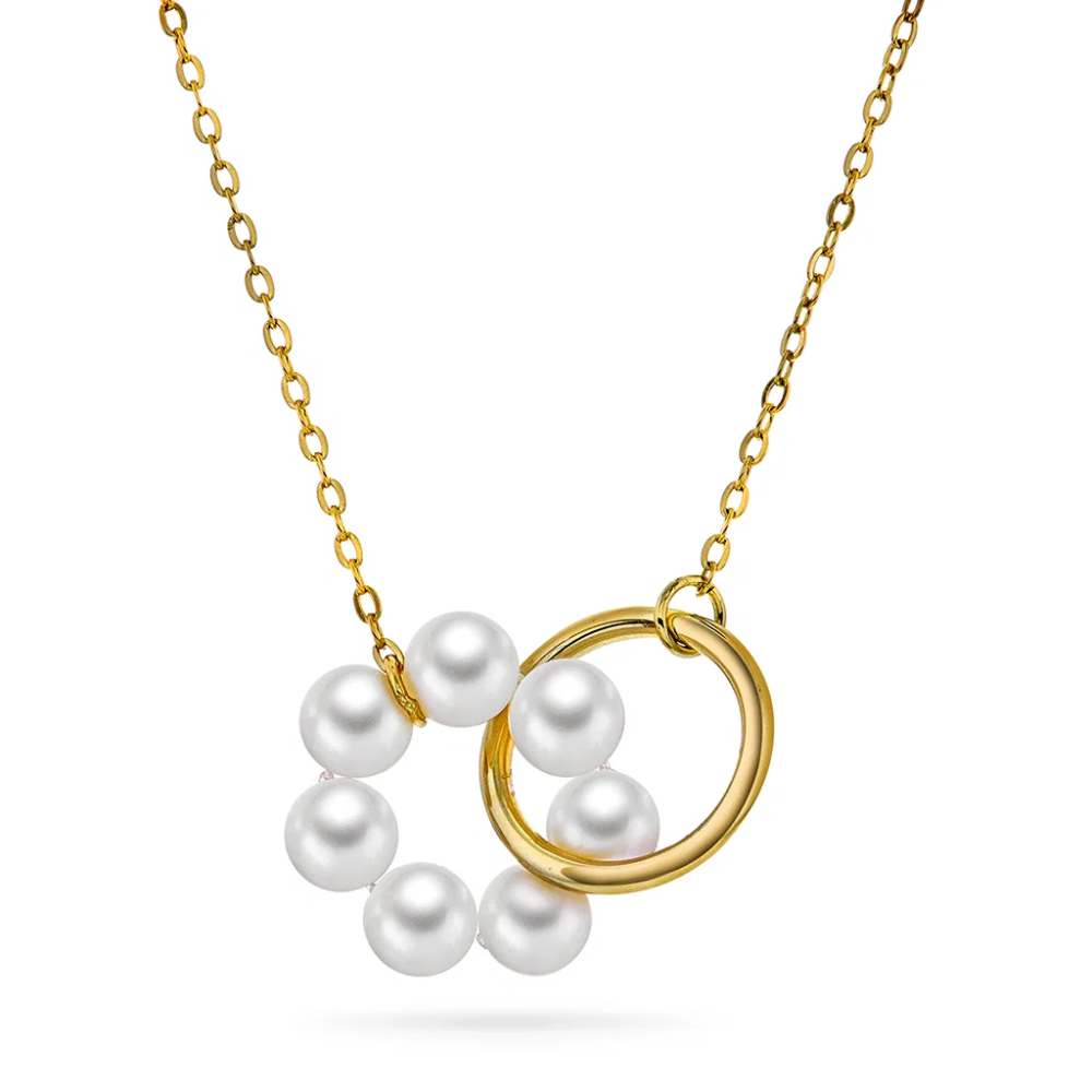 Harmoni halssmykke i forgylt sølv med vakre ferskvannsperler danner et tidløst smykke som symboliserer balanse og samhold. Perfekt alene eller sammen med andre smykker i denne serien. Kommer også i armbånd og øreringer.