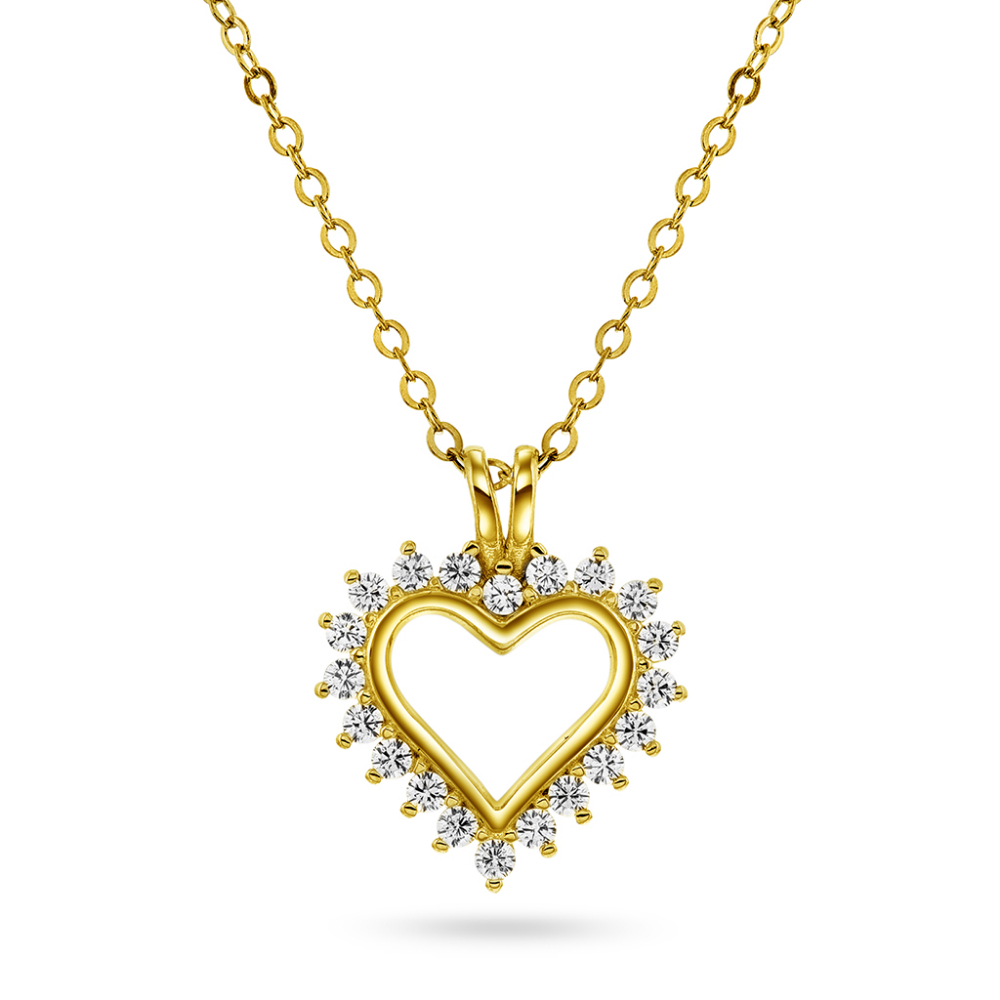 Pan Jewelry  Classic- Hjerte halssmykke i forgyldt sølv med zirkonia og sølvkjede