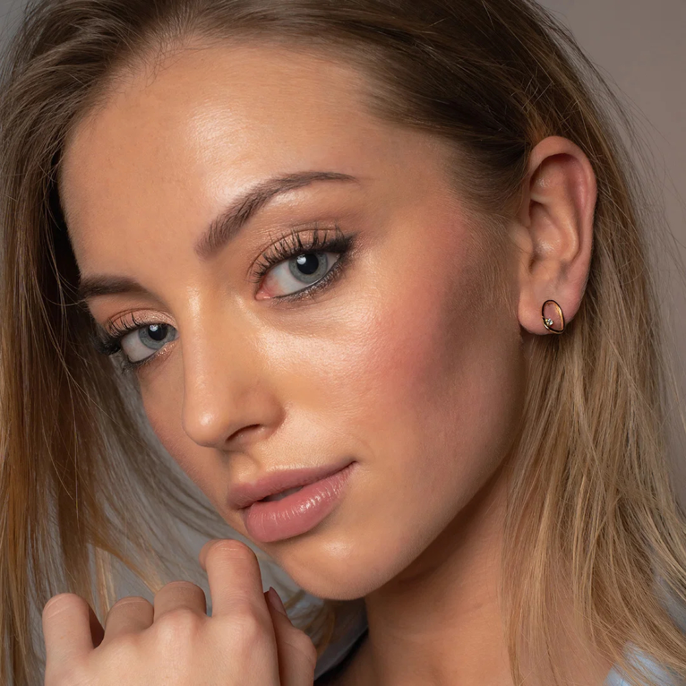 Solin øredobber i forgylt sølv er designet med en oval silhuett – nesten firkantet, men myk i uttrykket. Med en liten, glitrende sten i kanten som gir et vakkert skinn. Passer perfekt for hverdagsbruk og mer formelle anledninger. Klassiske med en trendy vri. Kommer også i smykke og ring, samt i rhodinert utførelse.