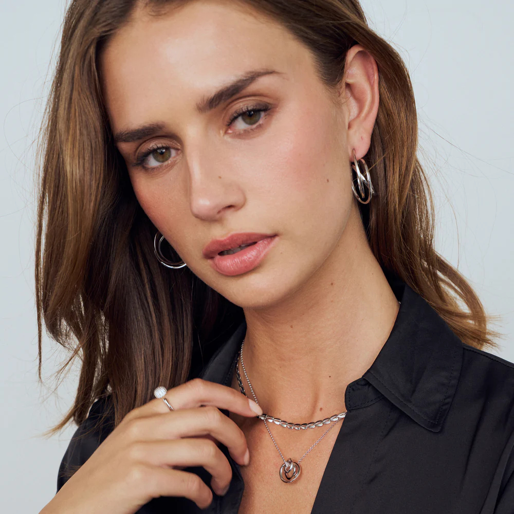 Halssmykket er laget i rhodinert 925 sterling sølv med polert overflate