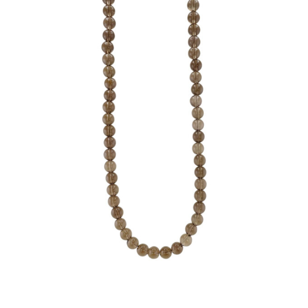 Susanne Friis Bjørner – Halssmykke i forgylt sølv med 8mm runde perler i røyk kvarts