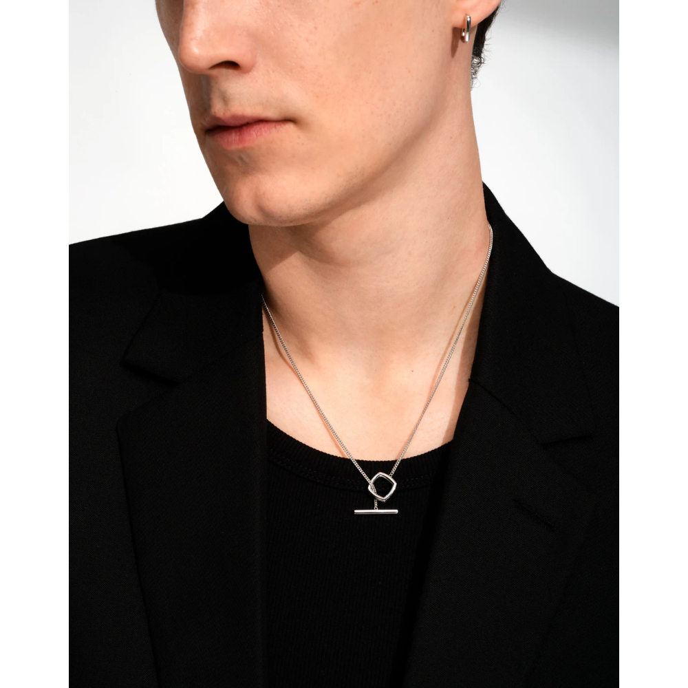 Frame-anhenget er et moderne halskjede med en spesiallaget T-stang og ringlĂ¥s satt pĂ¥ en slank Curb-kjede. Med puteformen som midtpunktet i hvert design, hyller Frame-kolleksjonen vĂ¥r aller første signaturstil.