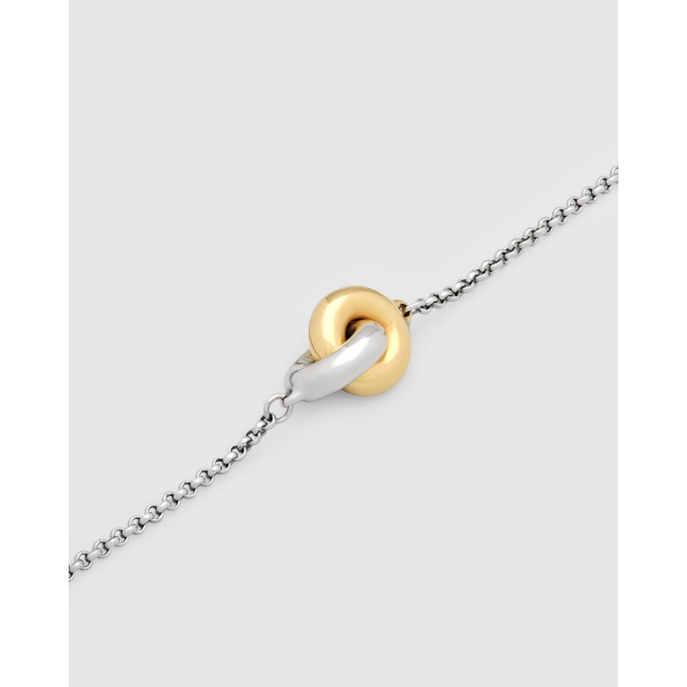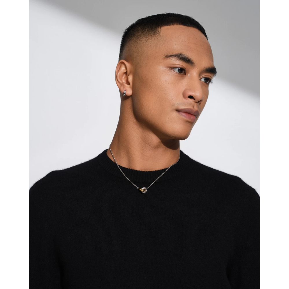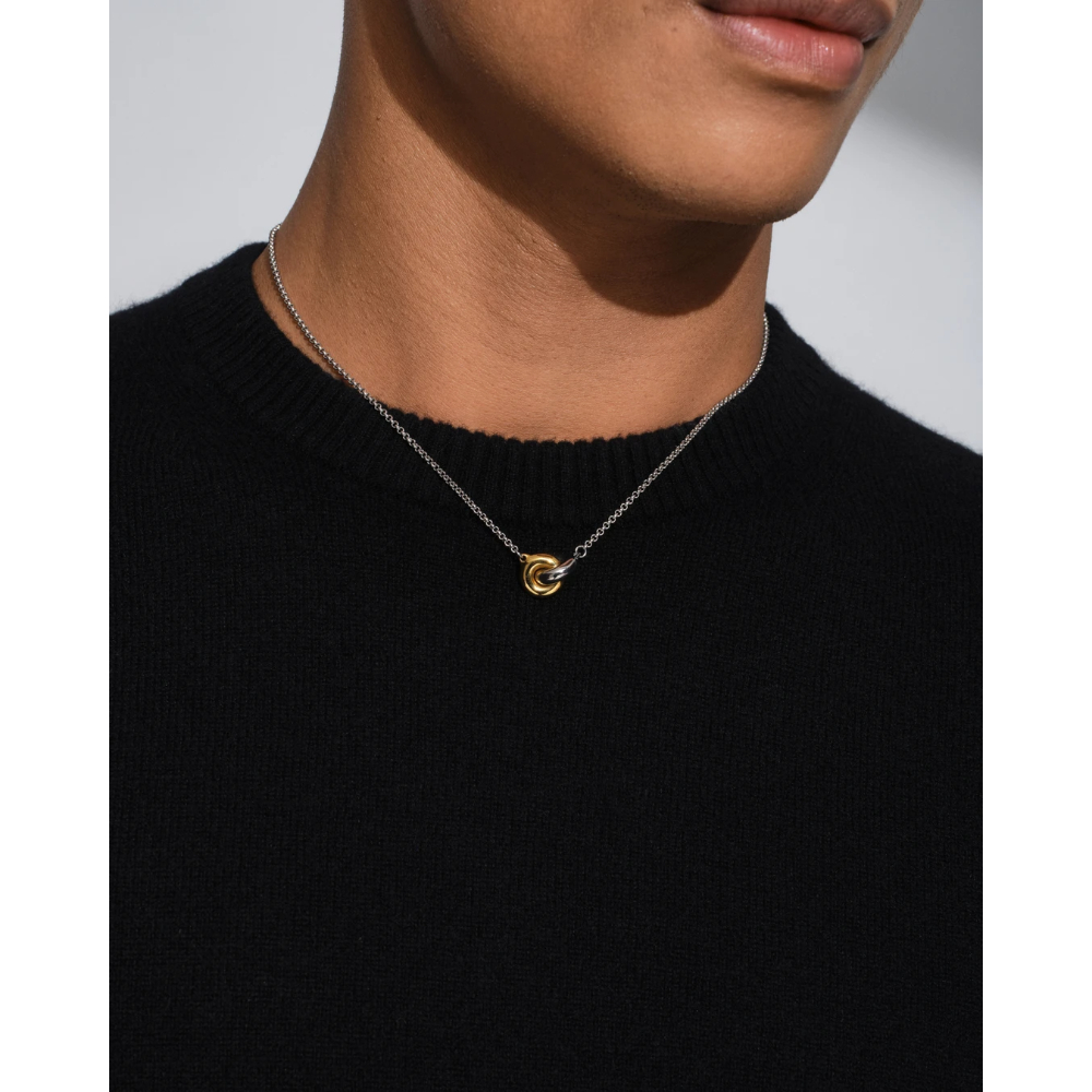 Sphere Double Pendant Duo kombinerer to sammenkoblede sirkler i kontrasterende metaller, noe som skaper en dynamisk oppfatning. Montert på en delikat kjede med vår signaturstøpte Tom Wood-logostang.