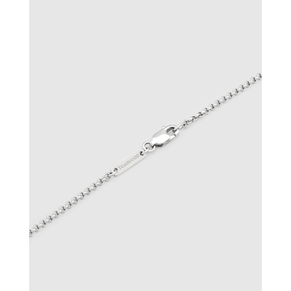 Sphere Double-anhenget kombinerer to sammenkoblede sirkler i kontrasterende metaller, noe som skaper en dynamisk oppfatning. Montert på en delikat kjede med vår signaturstøpte Tom Wood-logostang.