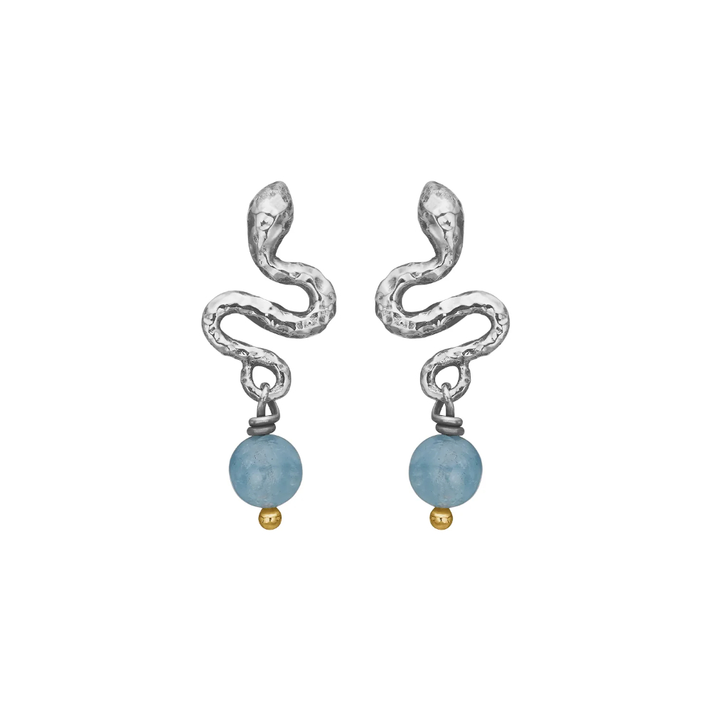 Serpent ørepynt i sølv med akvamarin og detaljer i 14k gult gull