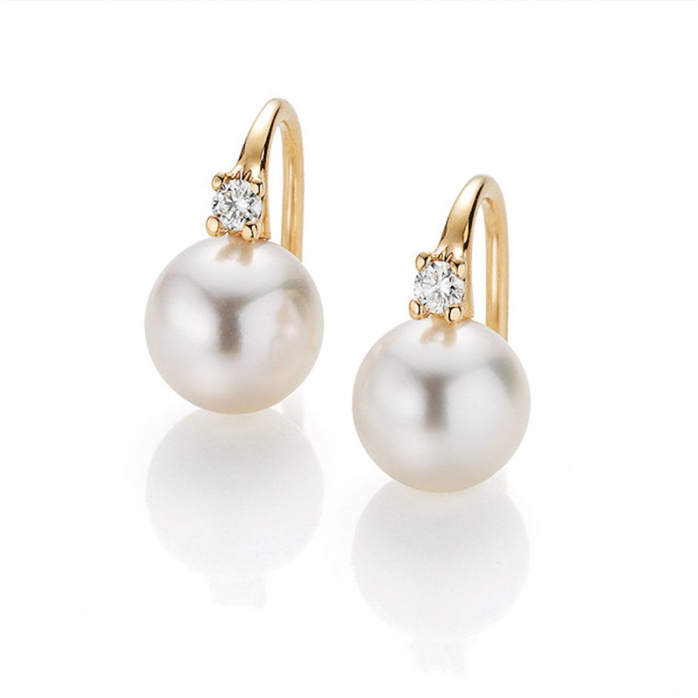 Vakker ørepynt i 18k rosegull med diamanter 0,08ct TW/VS og hvite runde akoyaperler 8-8,5 mm
