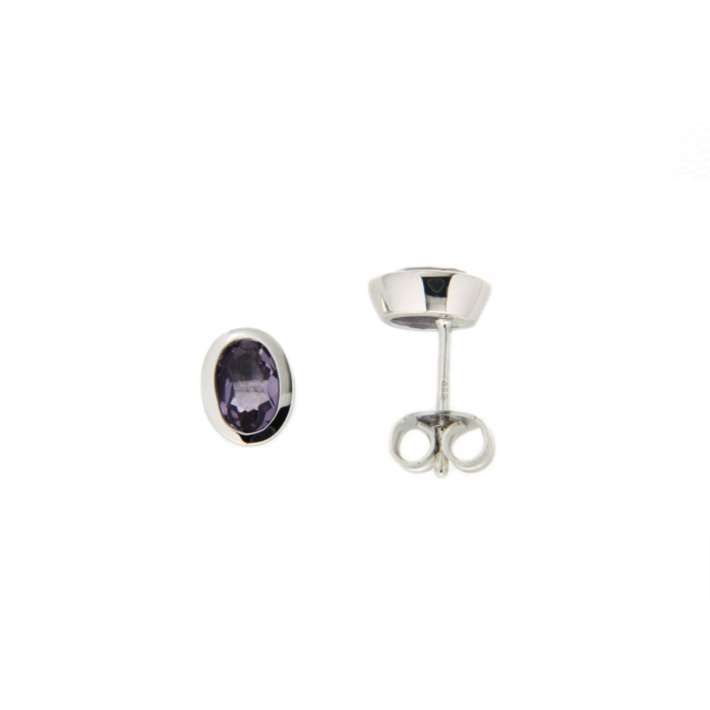 Ørepynt i hvitt gull 585/14K med oval ametyst