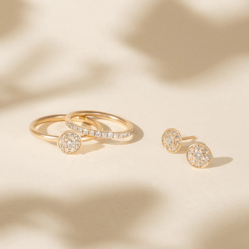 14 karat gull laget av resirkulert metall og besatt med nydelige naturlige I/SI-diamanter – alle etisk hentet og håndsatt for varig briljans. Designet i Danmark, bærekraftig laget i Julie Sandlaus produksjon i Vietnam.