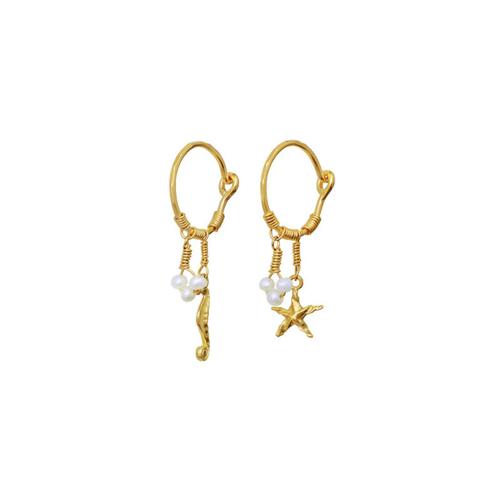 Maanesten – Momi ørepynt i sølv med perle, sjøstjerne og sjøhest