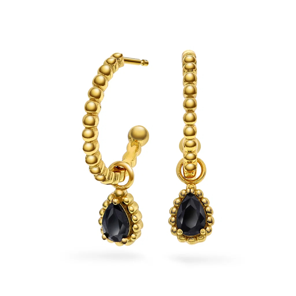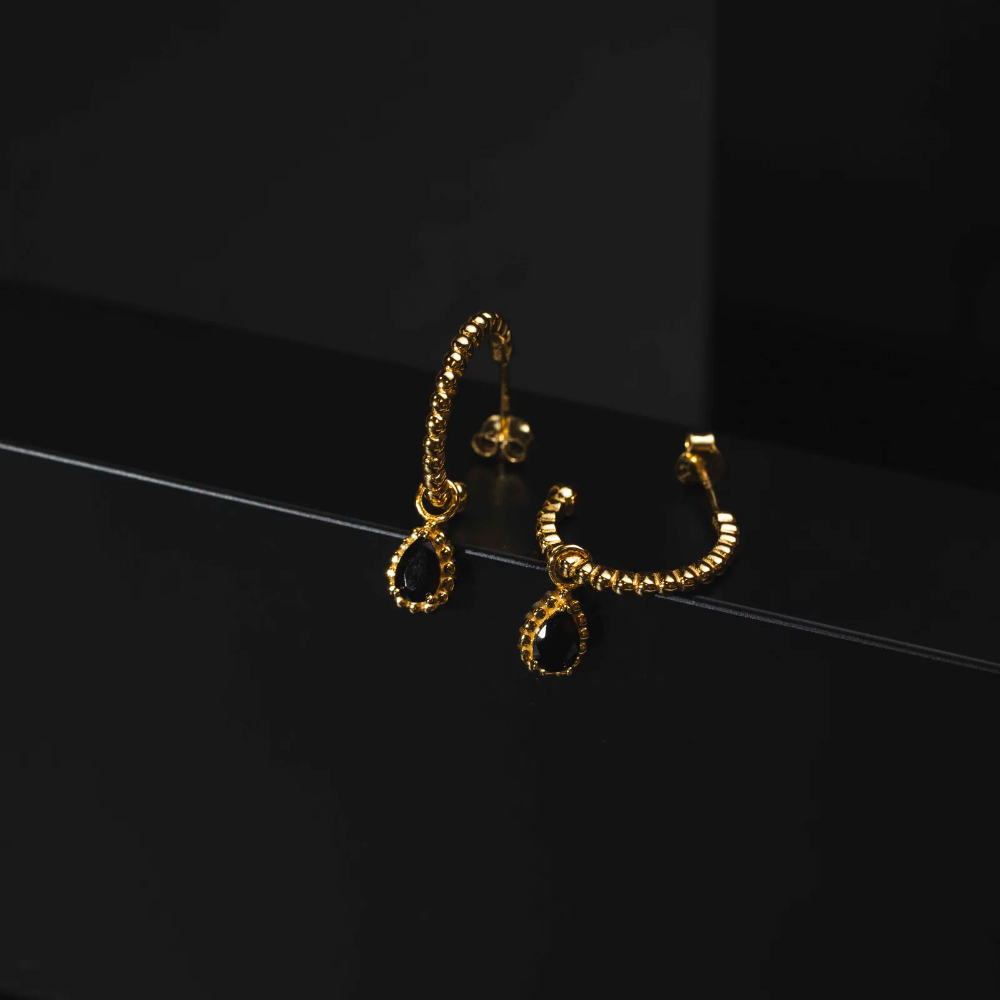 Øreringer i forgylt 925 sølv med sort zirkonia stein fra Nora Mørk by Gulldia.