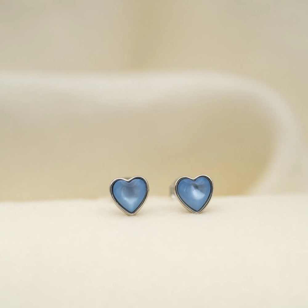 Prins & Prinsesse – Øredobber i sølv med lys blå perle hjerte