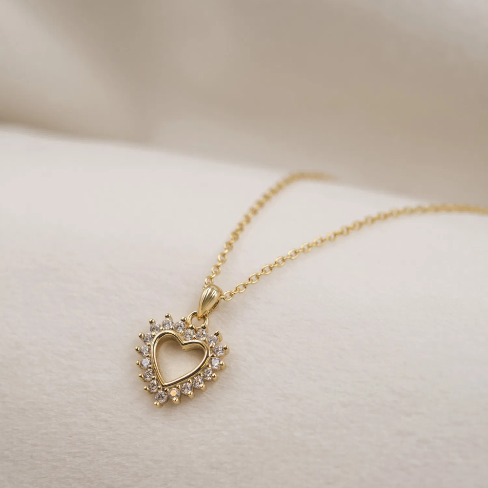 Halssmykke i forgylt 925 sterling sølv med zirkonia hjerte