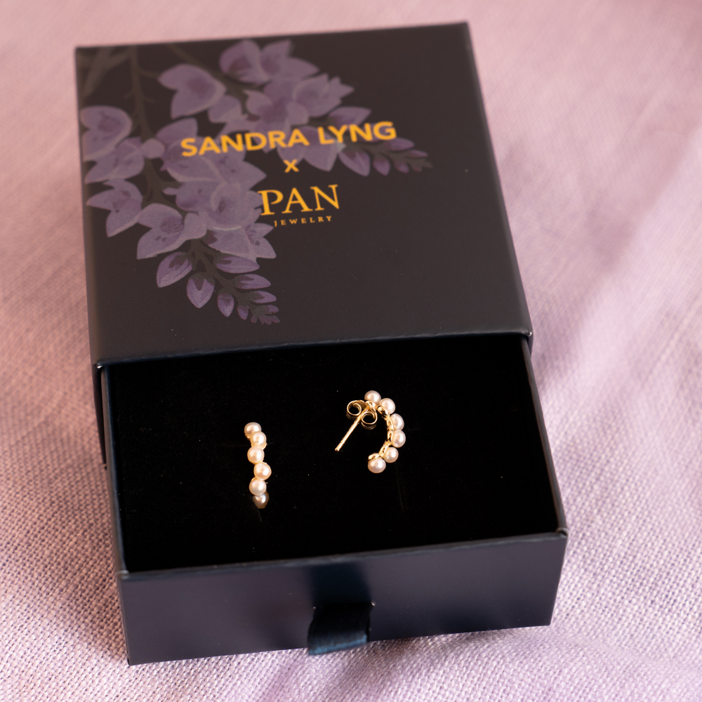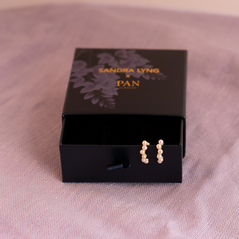 Sandra Lyng x Pan Jewelry – Ørepynt i forgylt sølv – Perlefnugg