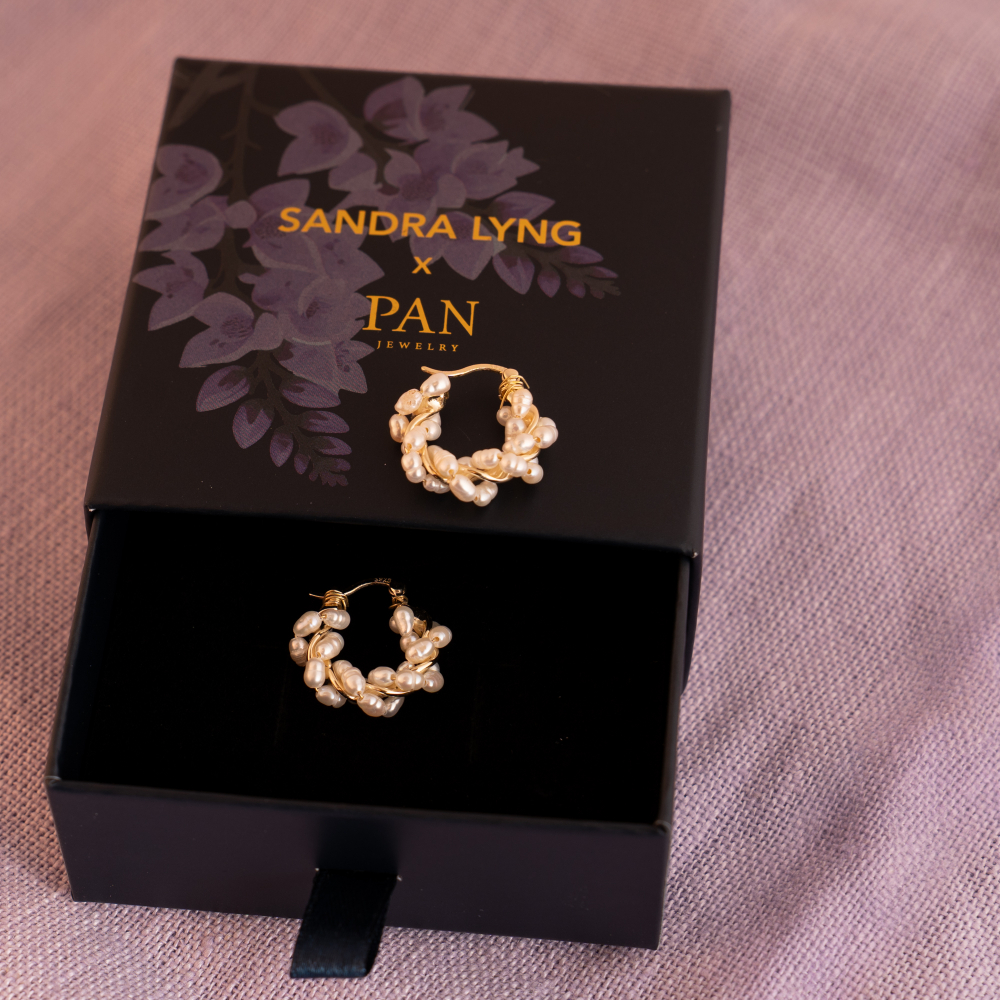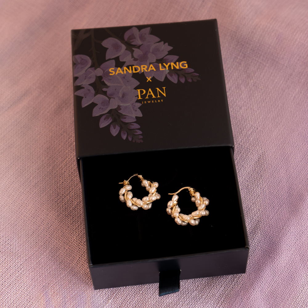 Sandra Lyng x Pan Jewelry – Øreringer i forgylt sølv – Perledrøm, 18 mm