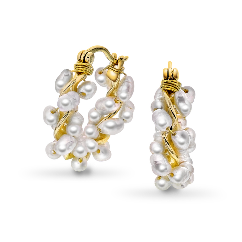 Perledrøm øreringer i 925 forgylt sølv med små, vakre ferskvannsperler er inspirert av de bestselgende øreringene Sandra brukte i sitt bryllup. Dette er vakre og iøynefallende øreringer, litt mindre øreringer enn de store Perledrøm øreringene. Disse passer perfekt til store anledninger, men også i hverdagen. Passer sammen med Perledrøm armbånd og Perlefnugg øredobber.