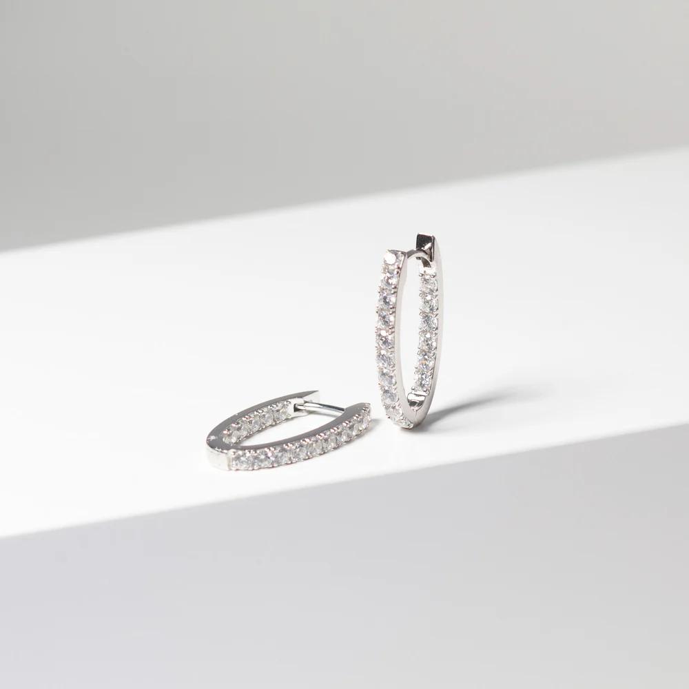 Dekorert med håndsatte fasetterte hvite zirkonia på inn- og utsiden av øreringene