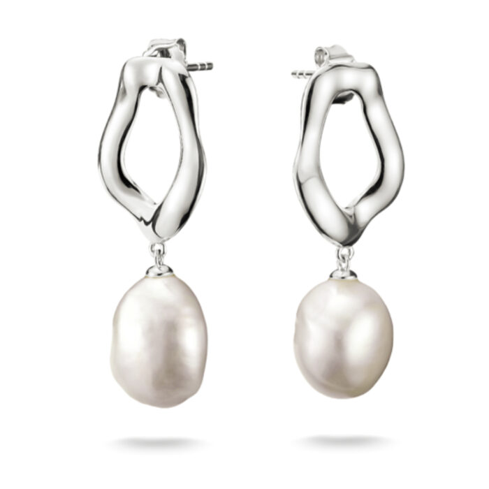 Disse nydelig ørepyntene er inspirert av naturens myke, organiske former og er laget i resirkulert 925 sølv og ferskvannsperle.