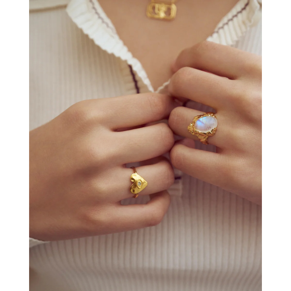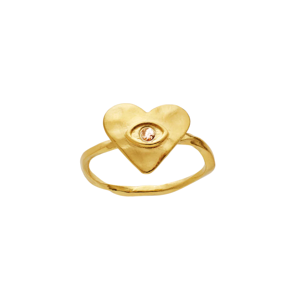 Kjærlighet overvinner alt. Den hjerteformede Cassia-ringen er forsterket med labradorit som virker som et skjold mot negativitet og er en enhet av kjærlig kraft like ved hånden.