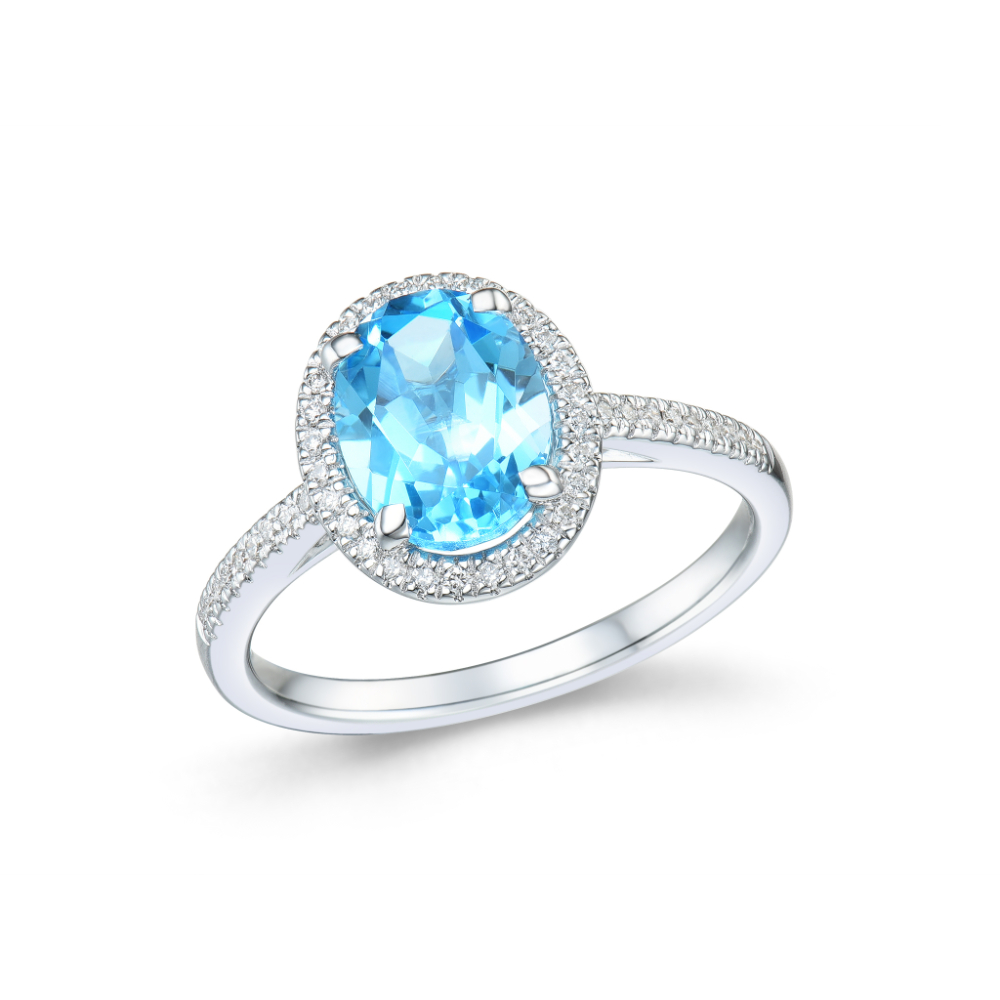 Fattet med en nydelig sky blue topas. NB: noe mer lys skyblå en avbildet.