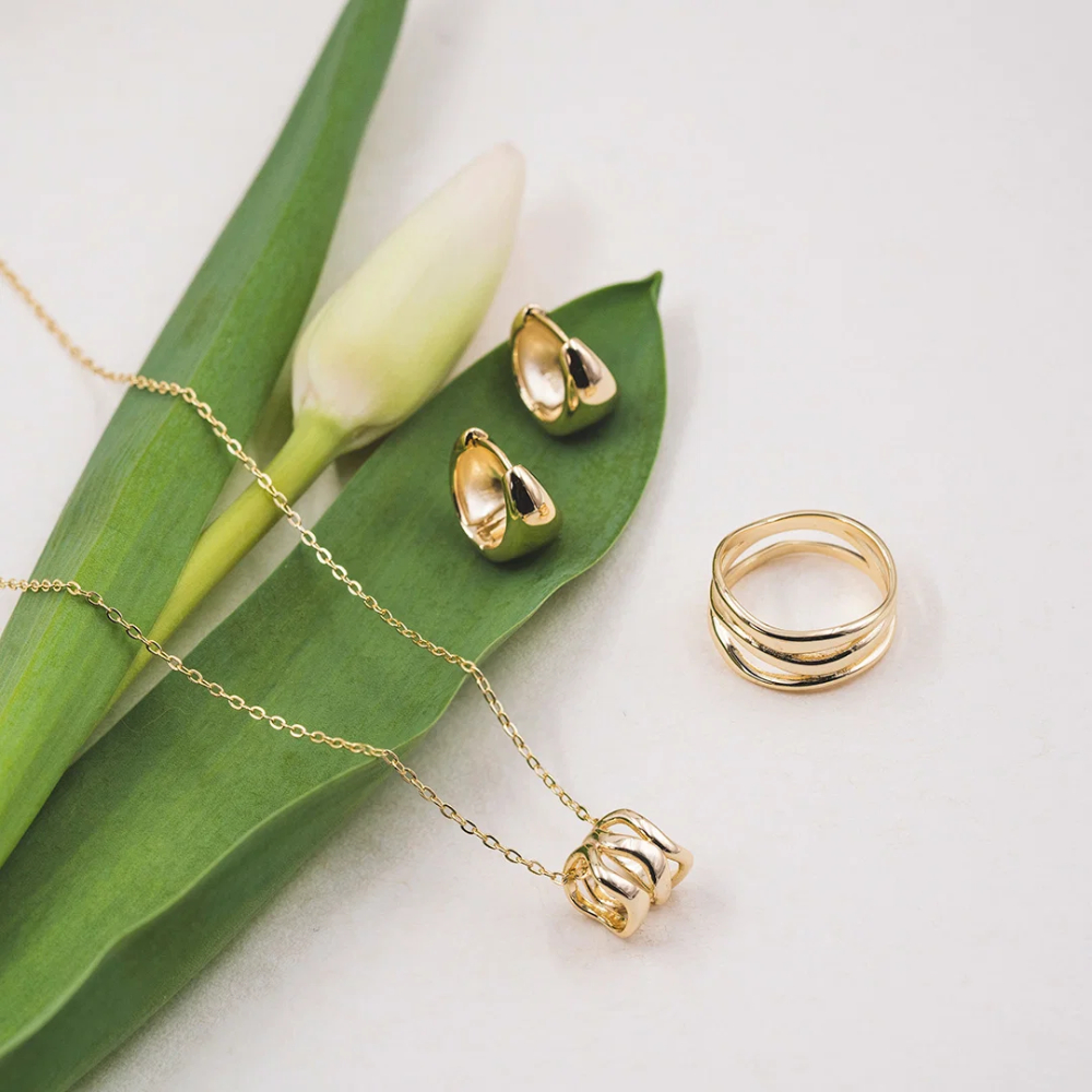 Vibe ring i forgylt sølv har et lag-på-lag design med myke, organiske linjer. Bruk den alene for et rent uttrykk eller match sammen med andre smykker i Vibe-serien. Kommer også i rhodinert utførelse.