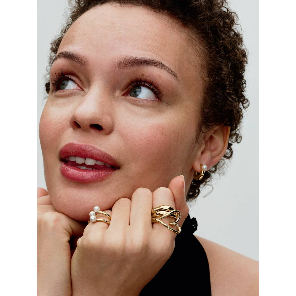 Kjærlighet og natur møtes. Ringen, som er belagt med 14k gull, har en diskré bølgeform, som skaper ufullkomment hjerte. Ved bruk berører bare den midtre delen av hjertet fingeren, mens resten av ringen er hevet. Denne skulpturelle hjerteformede ringen er et elegant og moderne statement.