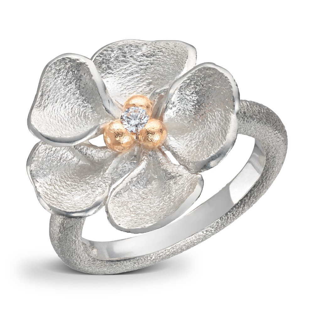 Van Bergen – Sølvring med gulldetaljer og diamant – Flôra kolleksjonen