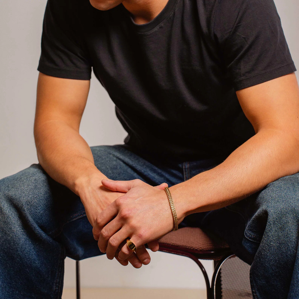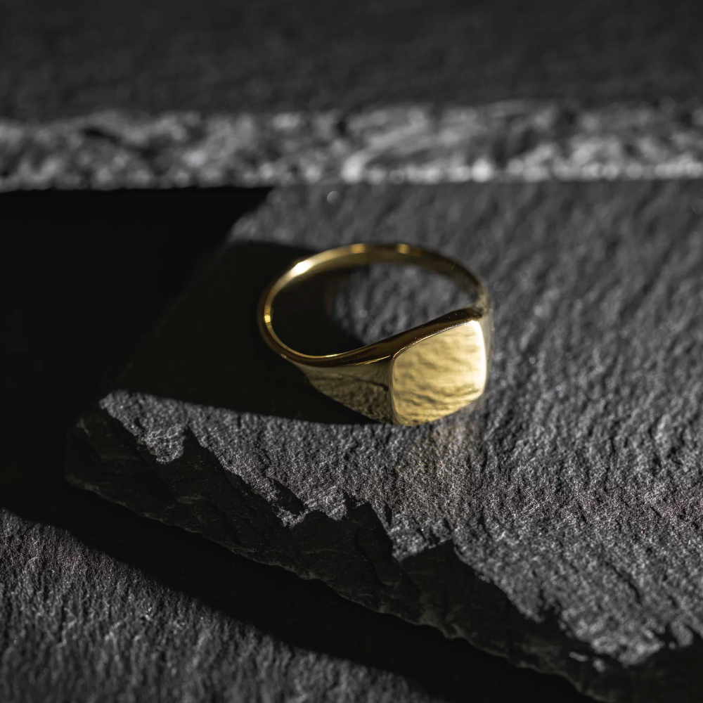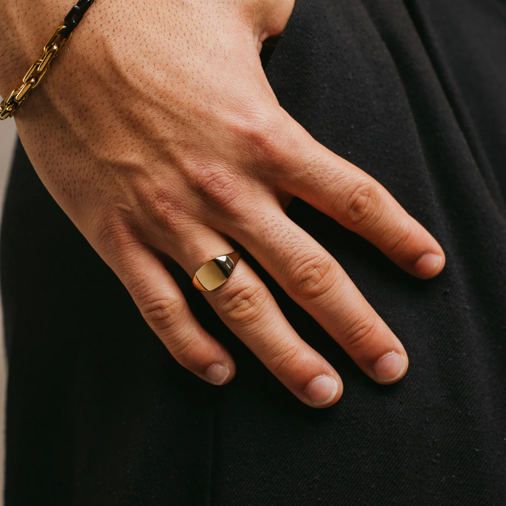 Klassisk og maskulin ring til herre i 925 forgylt sølv med 10 mm bred topp og 2 mm ringskinne. Finnes også rhodinert. En tidløs og solid ring som gir et hint av karakter til enhver anledning.