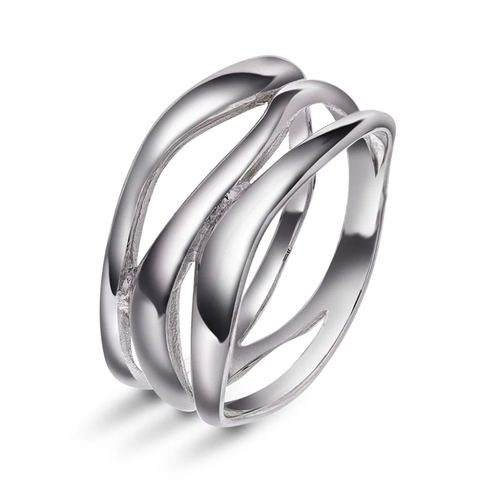 Vibe ring i rhodinert sølv har et lag-på-lag design med myke, organiske linjer. Bruk den alene for et rent uttrykk eller match sammen med andre smykker i Vibe-serien. Kommer også i forgylt utførelse.