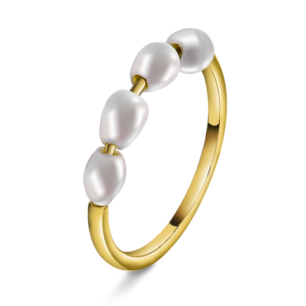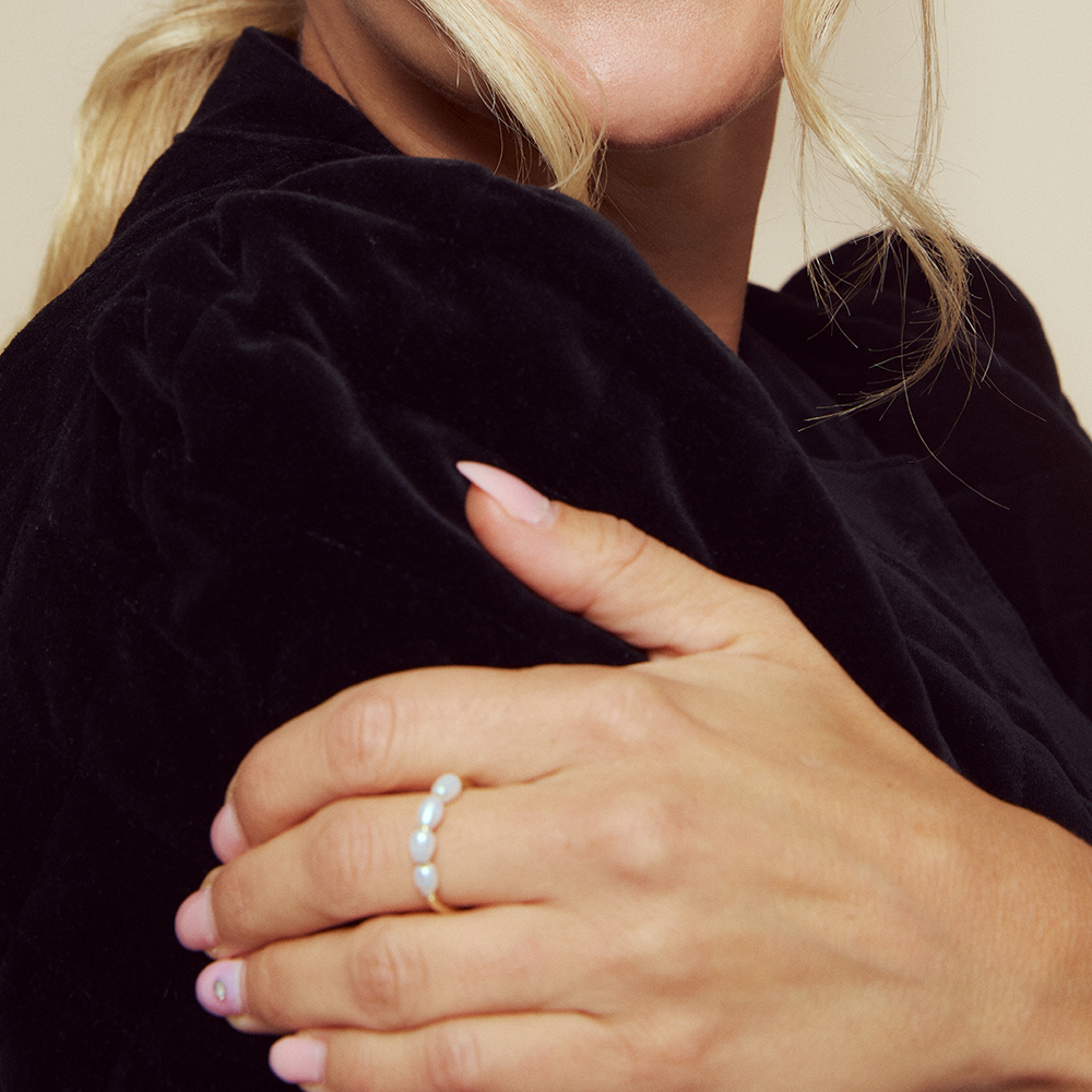 Engledråper ring i 925 forgylt sølv med nydelige, små ferskvannsperler er en enkel, men elegant ring. Perfekt når du vil føle deg ekstra fin – enten det er mandag morgen eller lørdagskveld. Passer sammen med Engledråper øredobber. Dette er den delikate hverdagsfavoritten!