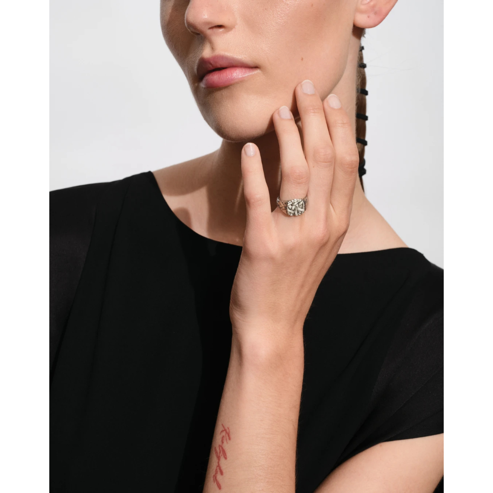 Quilt Ring Small er en innovativ vri pĂ¥ den klassiske Kay Ring, med en vevd overflate i satengfinish som gir dybde og et teksturert utseende. Laget gjennom en blanding av hĂ¥ndverk og moderne teknologi.